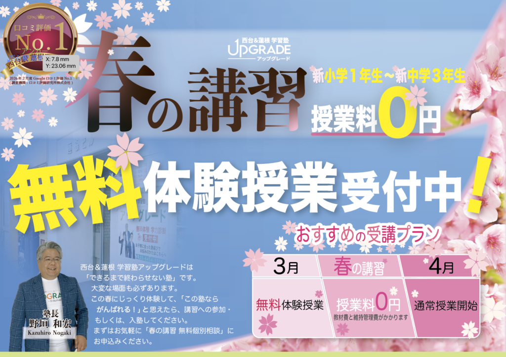 西台&蓮根 学習塾アップグレードでは、定期的に無料イベントを開催しています。詳しくは「もっと見る」からご確認ください。