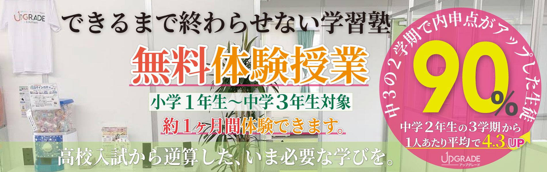 しかし、アップグレードは、生徒の理解度をしっかり確認する「テスト演習日」を設け、生徒が「できた」という実感を持てるまでサポートし、その上で次の授業に参加してもいます。これが好結果を出している秘訣の1つです。