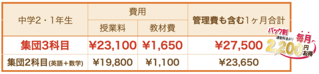 ※5•10•1月に塾内模試(全国模試)代として4,400円(税込)がかかります。
