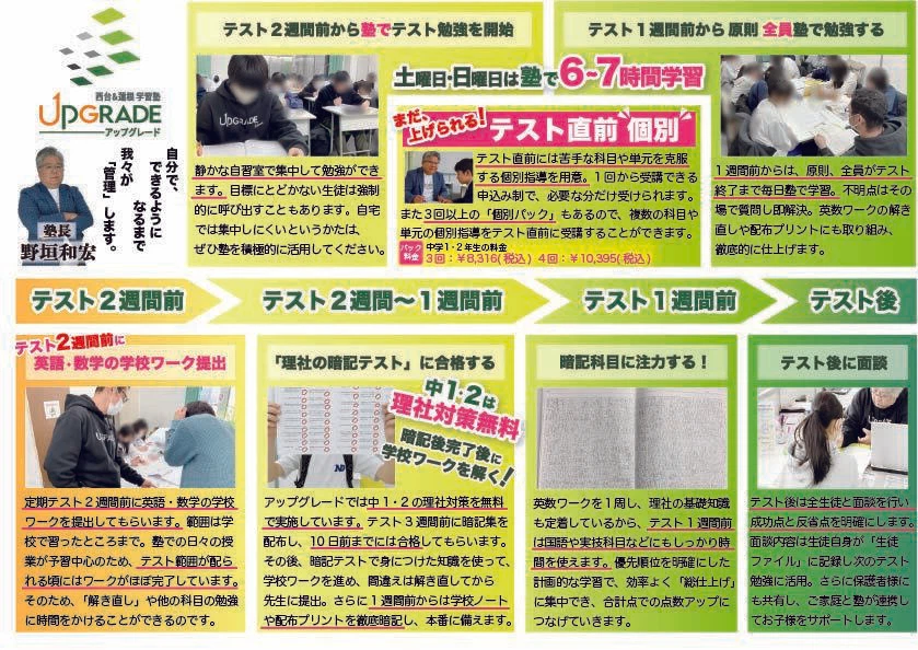 ぜひこの機会に、西台&蓮根 学習塾アップグレードの「学習管理」を体験してください。そして、3学期に実施される学年末試験で過去最高点をとってください!