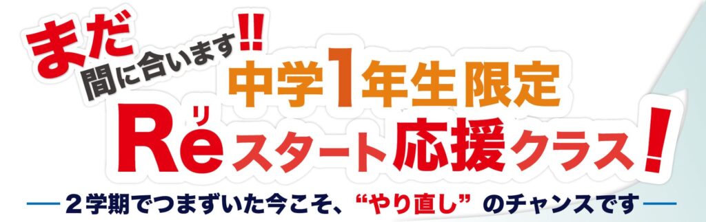 2学期になり、お子様の英語や数学の点数が下がって、不安に感じている方も多くいらっしゃると思います。そのような方々のために、この冬に中学1年生限定の『Reスタート応援クラス』を開講します。
